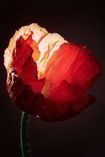 From the series Formation -- a study of the sculptural beauty of poppies. Shot close with strong lighting to reveal the papery texture and translucent quality of each petal, and to distil the organic form into minimalist compositions where light and shadow do the work.